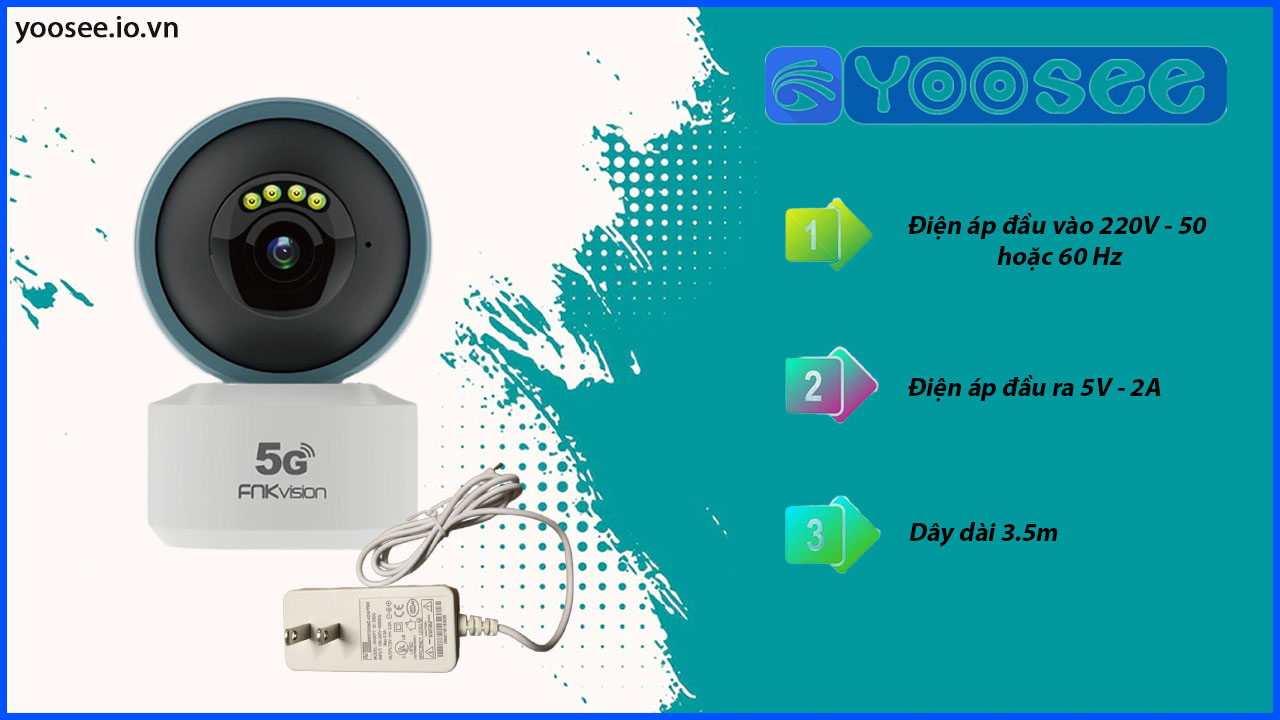 Thông số kỹ thuật nguồn camera Yoosee U4 xoay 360 trong nhà DC 5V
