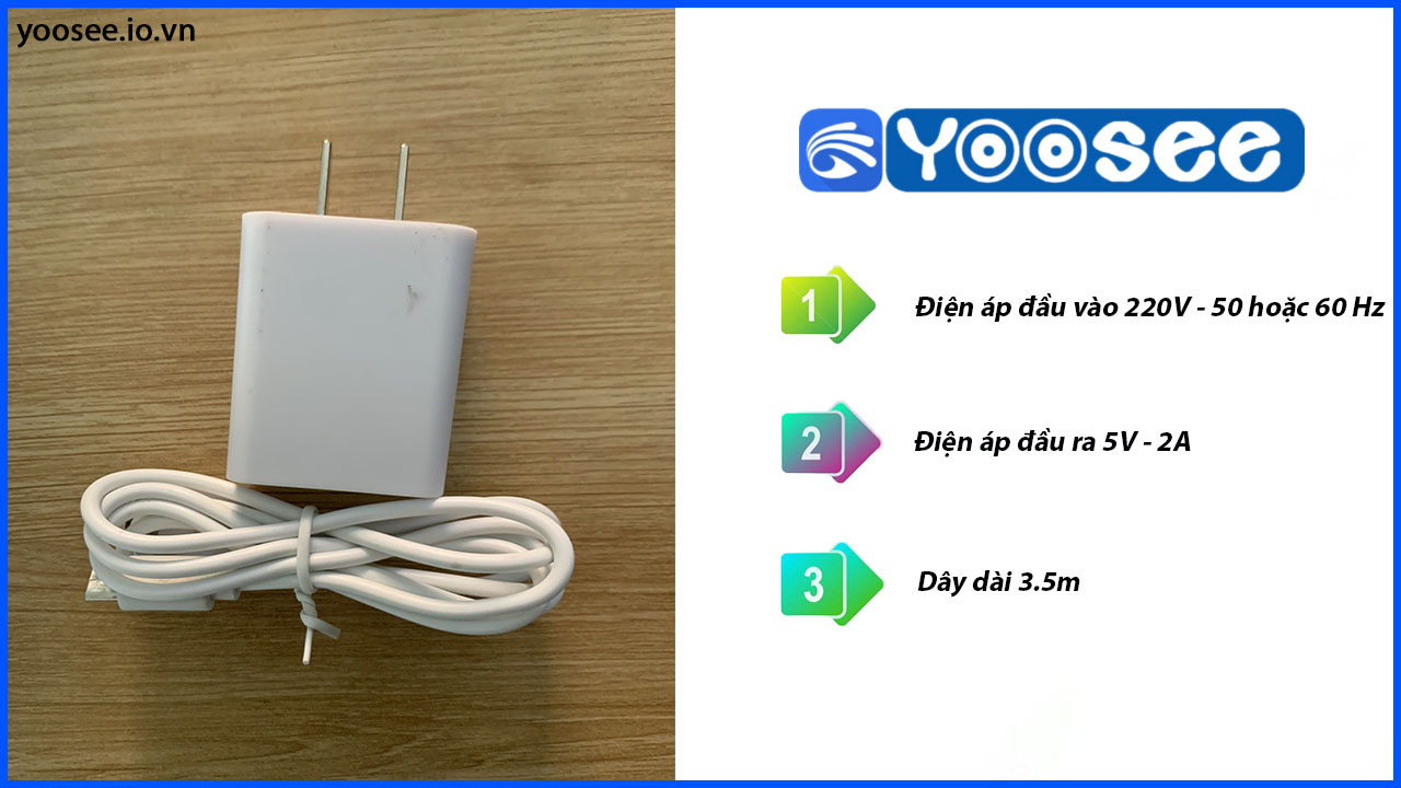 - Đây là ưu điểm quan trọng nhất của nguồn camera Yoosee 2 râu. Nguồn camera cung cấp dòng điện 5V 2A ổn định